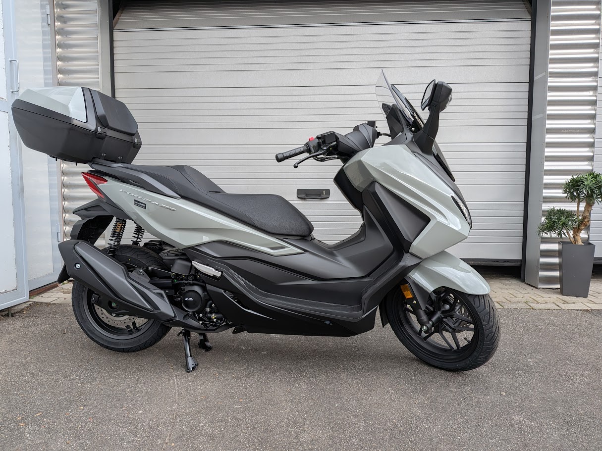 Der Forza 350 ist ein echter Sport-GT-Roller mit kraftvoller Motorleistung, HSTC für sicheres Fahren und exzellenter Kraftstoffeffizienz – und das alles in einem schlanken Design mit großzügigem Stauraum unter dem Sitz. Mit dem 5-Zoll-TFT-Bildschirm und der Honda RoadSync-Integration bleibst du den ganzen Tag über in Verbindung und hast während der Fahrt nahtlosen Zugang zu Anrufen, Musik und Navigation.